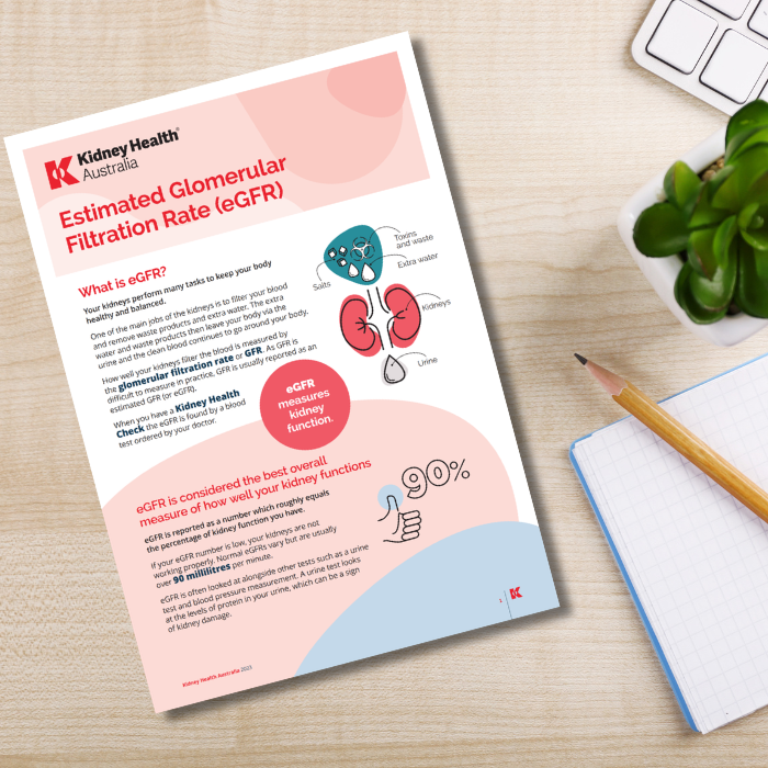 This factsheet is for anyone who needs a Kidney Health Check or has blood test results that include an eGFR number. Inside, you can learn what eGFR means and how it helps your healthcare team understand your kidney health.